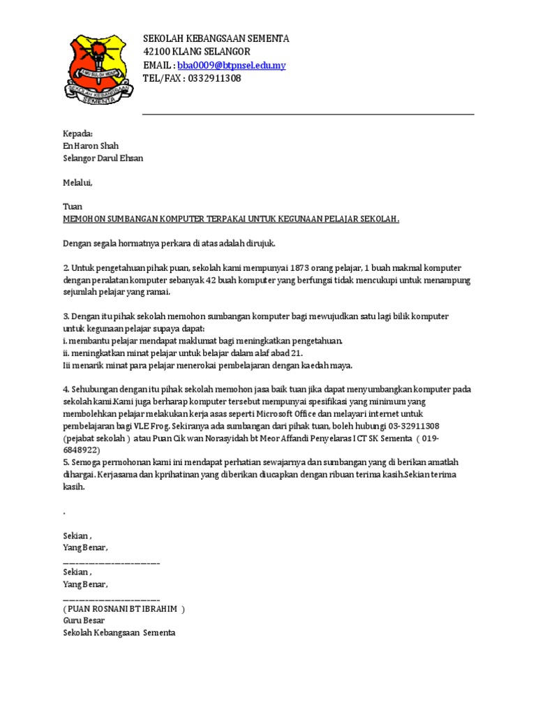 Surat Mohon Sumbangan Peralatan Ict Pdf